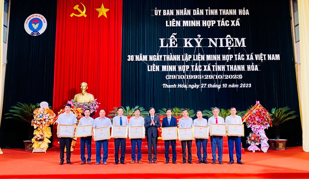 Sáng ngày 27/10/2023, Liên minh HTX tỉnh Thanh Hóa tổ chức Lễ kỷ niệm 30 năm ngày thành lập Liên minh HTX Việt Nam, Liên minh HTX tỉnh Thanh Hóa (1993-2023). Tham dự có các đồng chí Cao Xuân Thu Vân - Bí thư Đảng đoàn, Chủ tịch Liên minh HTX Việt Nam; Đầu Thanh Tùng - Tỉnh ủy viên, Phó Chủ tịch UBND tỉnh cùng đại diện sở, ngành cấp tỉnh và các HTX trong tỉnh.