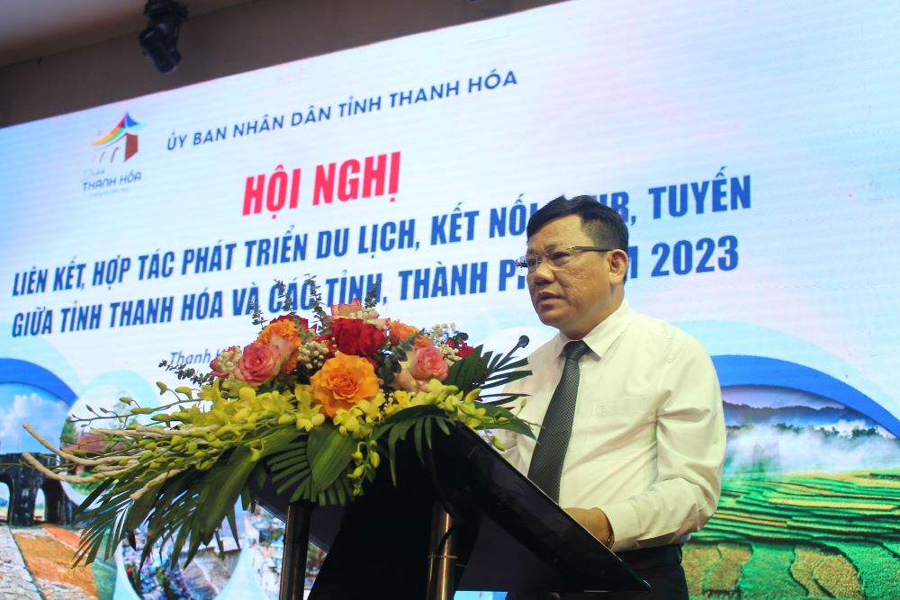 Phó Chủ tịch Thường trực UBND tỉnh Nguyễn Văn Thi phát biểu trong những hội nghị về kêu gọi xúc tiến đầu tư về du lịch xứ Thanh.