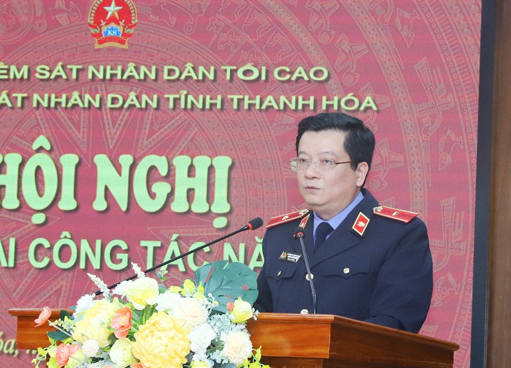 Phát biểu chỉ đạo tại hội nghị, Phó Viện trưởng VKSND tối cao Hồ Đức Anh ghi nhận, đánh giá cao những kết quả ngành kiểm sát tỉnh Thanh Hóa đã đạt được trong năm 2025.