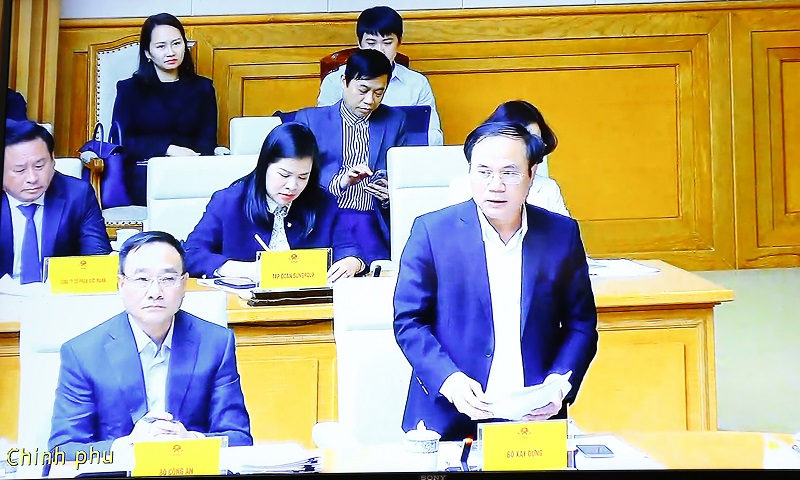 | Đại diện Bộ Xây dựng báo cáo tại hội nghị (ảnh chụp màn hình). |