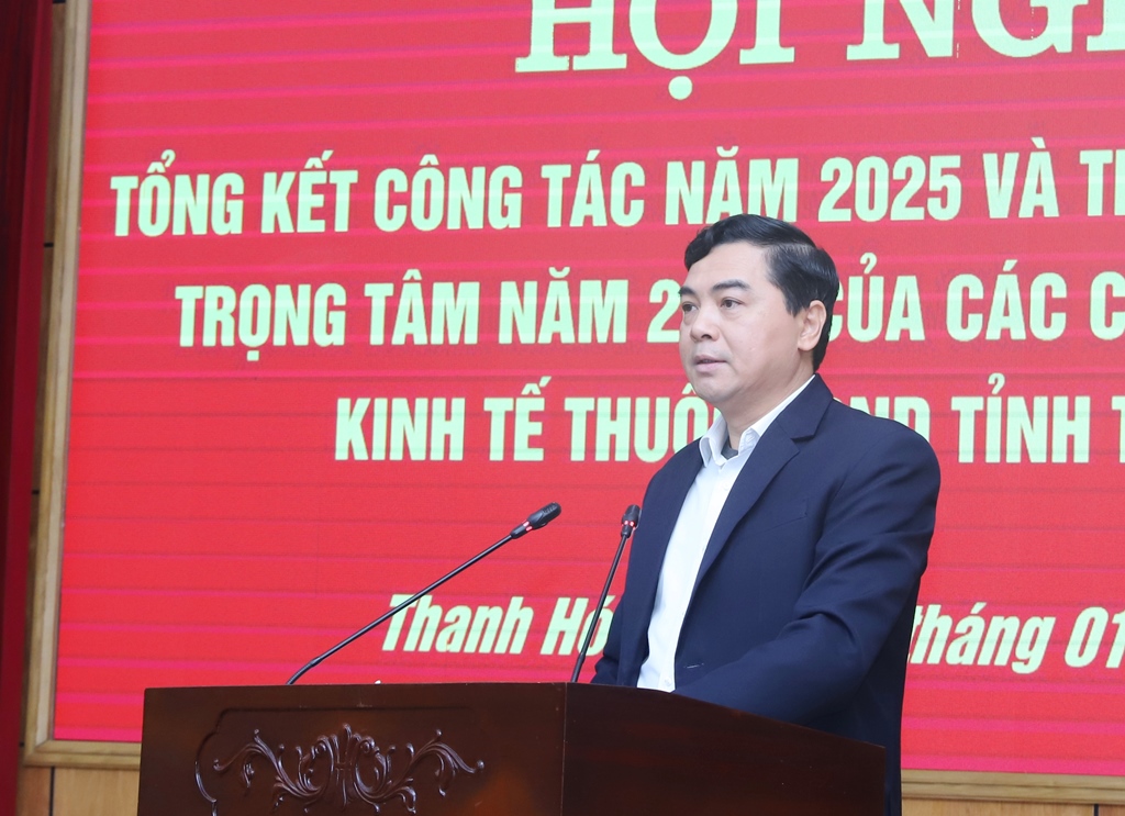 Tiếp đó, hội nghị được nghe đồng chí Giám đốc Sở Nông nghiệp và Môi trường trình bày báo cáo tóm tắt tổng kết công tác năm 2025 và triển khai nhiệm vụ trọng tâm năm 2026 ngành Nông nghiệp và Môi trường; đồng chí Giám đốc Sở Xây dựng trình bày báo cáo tóm tắt tổng kết công tác năm 2025 và triển khai nhiệm vụ trọng tâm năm 2026 ngành Xây dựng; đồng chí Giám đốc Sở Công Thương trình bày báo cáo tóm tắt tổng kết công tác năm 2025 và triển khai nhiệm vụ trọng tâm năm 2026 ngành Công Thương; đồng chí Trưởng Ban Quản lý Khu kinh tế Nghi Sơn và các khu công nghiệp trình bày báo cáo tóm tắt tổng kết công tác năm 2025 và triển khai nhiệm vụ trọng tâm năm 2026 Ban Quản lý Khu kinh tế Nghi Sơn và các khu công nghiệp; đồng chí Giám đốc Ban Quản lý dự án đầu tư xây dựng khu vực Khu kinh tế Nghi Sơn và các khu công nghiệp trình bày báo cáo tóm tắt tổng kết công tác năm 2025 và triển khai nhiệm vụ trọng tâm năm 2026 Ban Quản lý dự án đầu tư xây dựng khu vực Khu kinh tế Nghi Sơn và các khu công nghiệp; đồng chí Giám đốc Ban Quản lý dự án đầu tư xây dựng các công trình nông nghiệp và phát triển nông thôn trình bày báo cáo tóm tắt tổng kết công tác năm 2025 và triển khai nhiệm vụ trọng tâm năm 2026 Ban Quản lý dự án đầu tư xây dựng các công trình nông nghiệp và phát triển nông thôn.