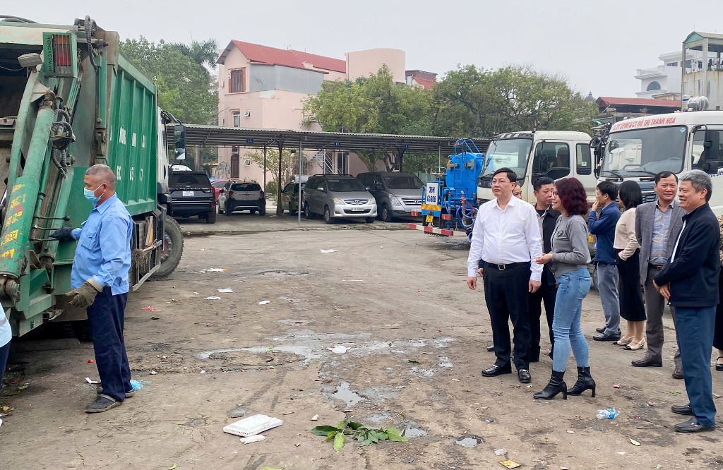 Phó Chủ tịch Thường trực UBND tỉnh và đoàn công tác kiểm tra tình hình hoạt động thu gom, xử lý rác thải tại Công ty CP Môi trường và Công trình đô thị Thanh Hóa.