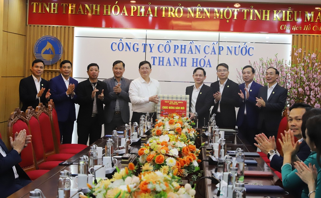 Phó Chủ tịch Thường trực UBND tỉnh và đoàn công tác chúc Tết, tặng quà Công ty CP Cấp nước Thanh Hóa.