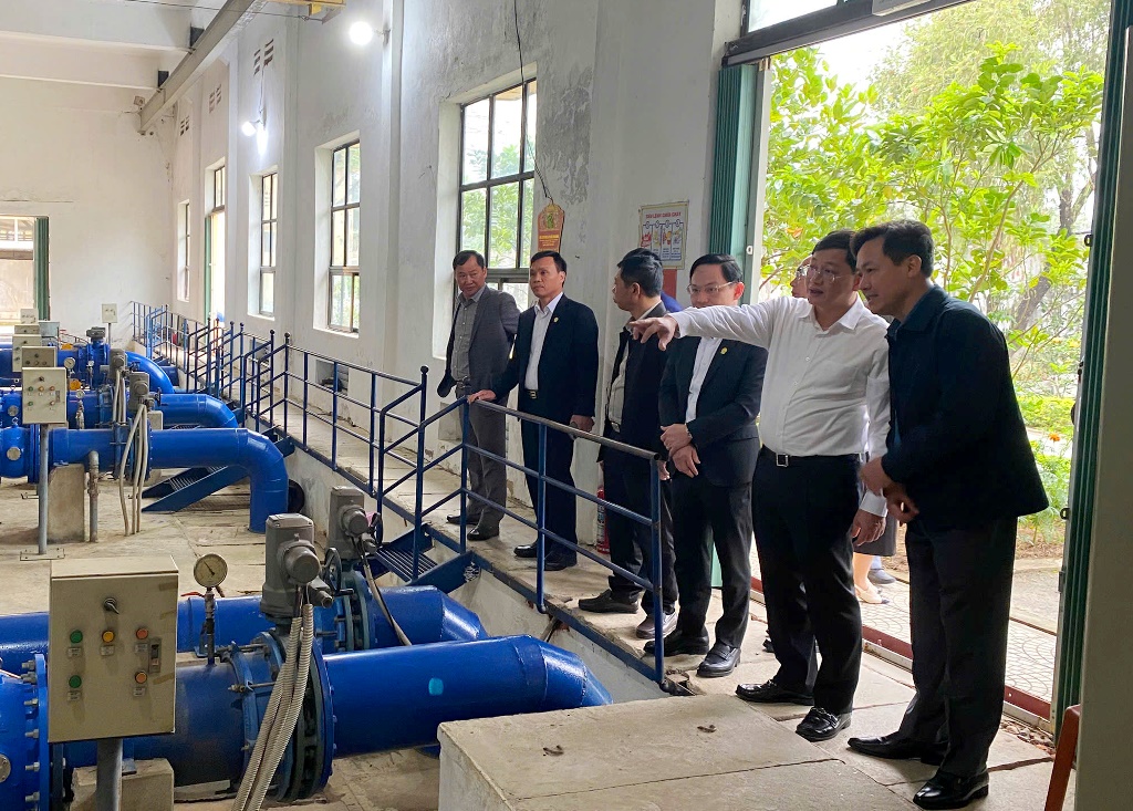 Phó Chủ tịch Thường trực UBND tỉnh và đoàn công tác tham quan hệ thống xử lý nước tại Công ty Cấp nước Thanh Hóa.