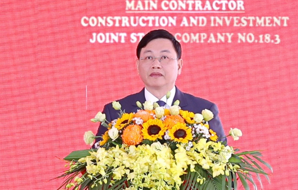 Phó Chủ tịch Thường trực UBND tỉnh Thanh Hóa Mai Xuân Liêm phát biểu tại lễ khởi công.