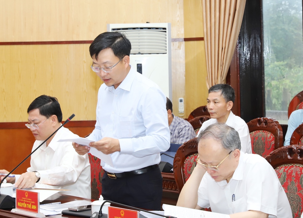 Chánh Văn phòng UBND tỉnh Nguyễn Thế Anh trình bày báo cáo tại phiên họp.