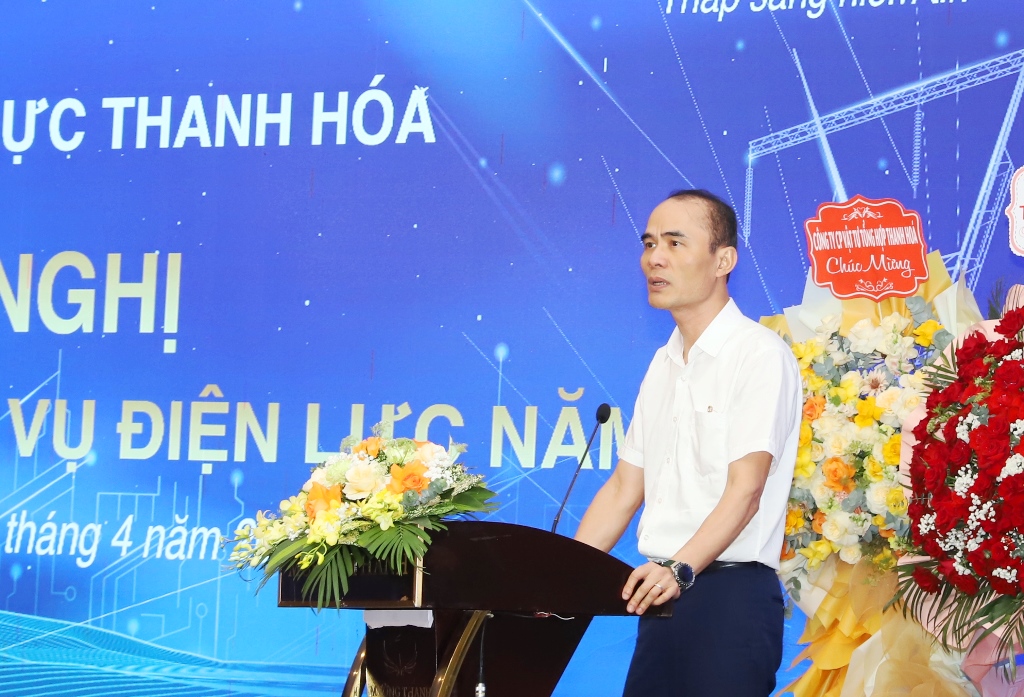 Đồng chí Hoàng Hải, Giám đốc Công ty Điện lực Thanh Hóa phát biểu khai mạc hội nghị.