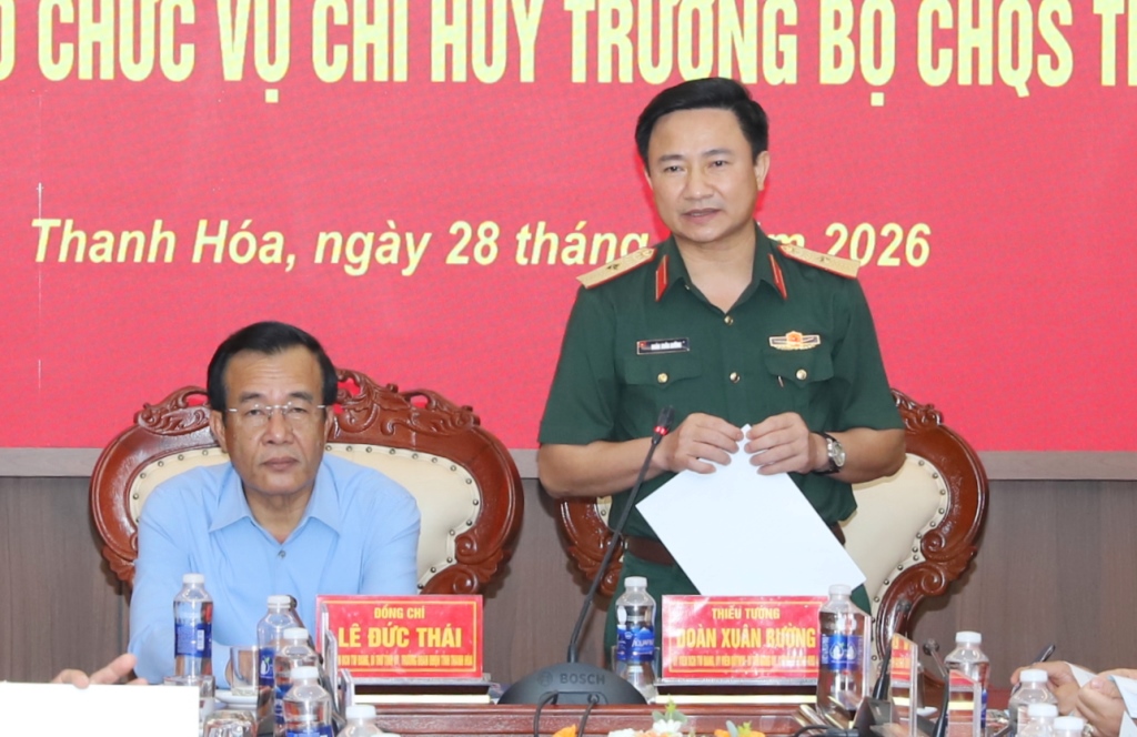 Chiều ngày 28/4/2026, Bộ Chỉ huy Quân sự tỉnh Thanh Hóa tổ chức hội nghị bàn giao chức vụ Chỉ huy trưởng Bộ Chỉ huy quân sự tỉnh giữa Thiếu tướng Vũ Văn Tùng và Đại tá Đinh Bạt Văn.